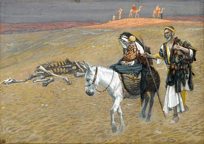 Top image credit: The Flight Into Egypt, watercolor illustration by James Tissot, image source at Brooklyn Museum, Brooklyn, New York, USA. In the public domain.